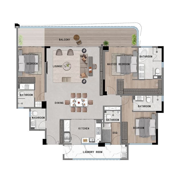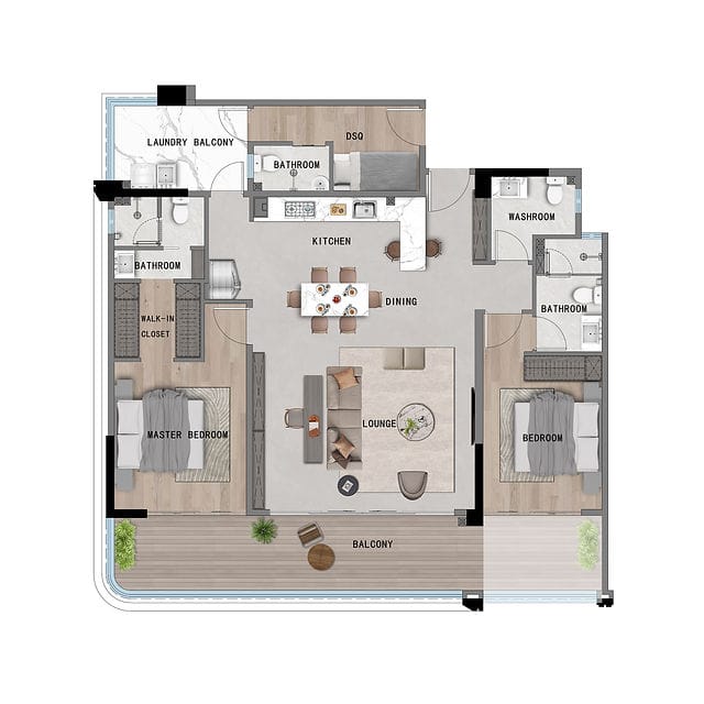 2 Bedroom + DSQ | 128–133 sqm | From KES 15.2M