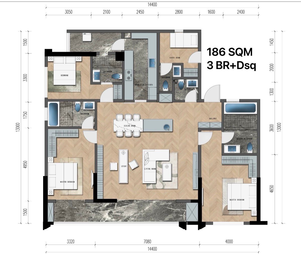 Luxurious 3 Bedroom + DSQ + Study (200 sqm) — From KES 27M
