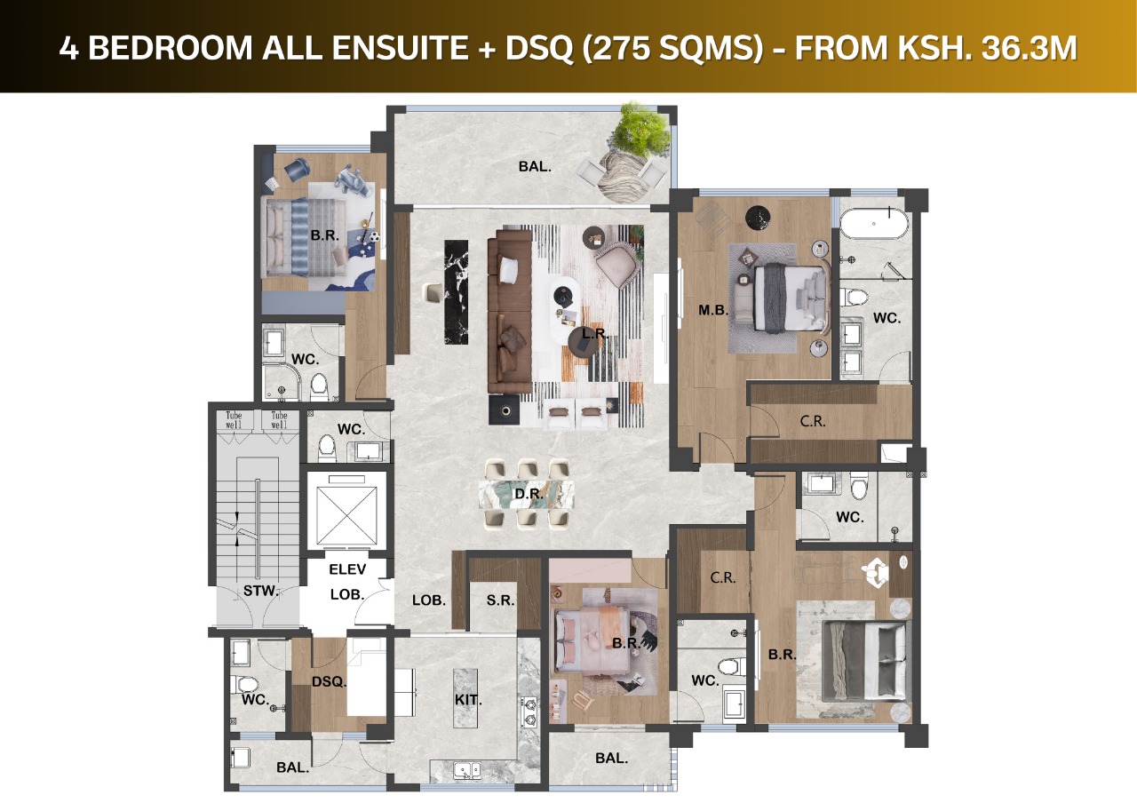 Gaia Brookside Forest Apartments 3, 4 & 5 Bedrooms in Westlands