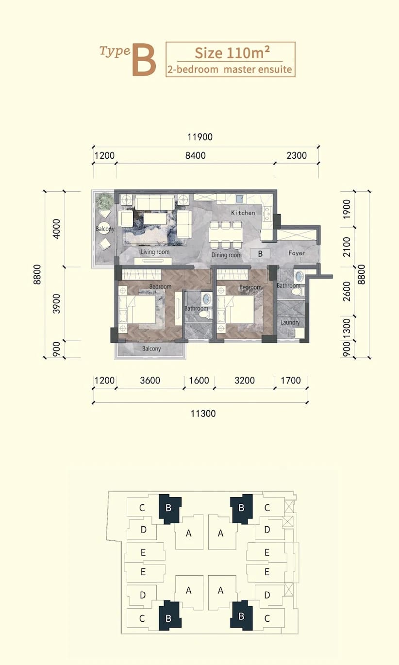 - 2 Bedroom (Master Ensuite – 110 sqm) – From Ksh 12M
