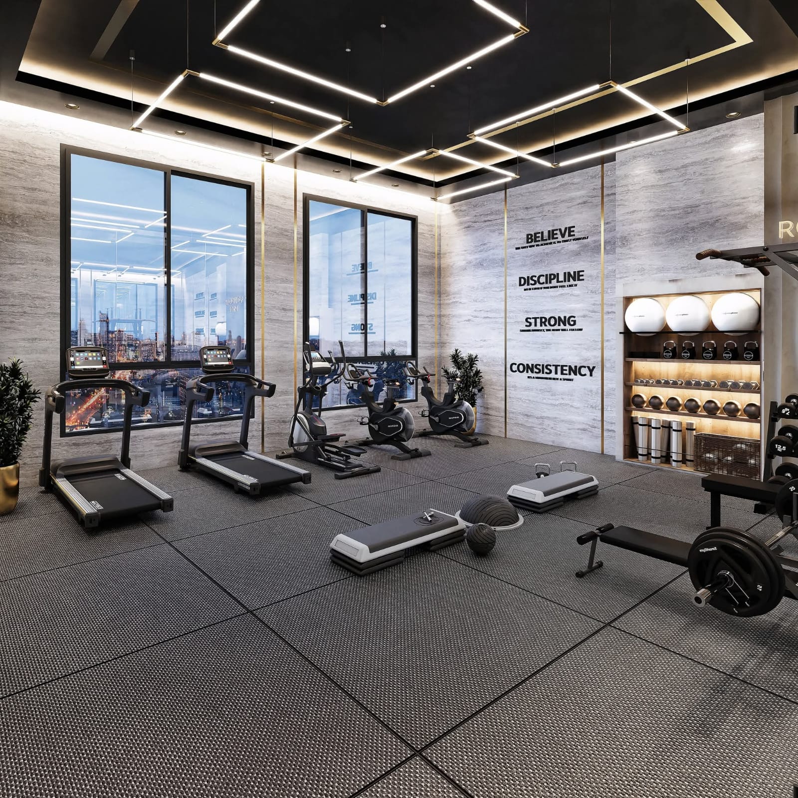 - Fully equipped gym